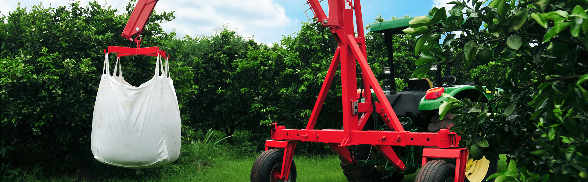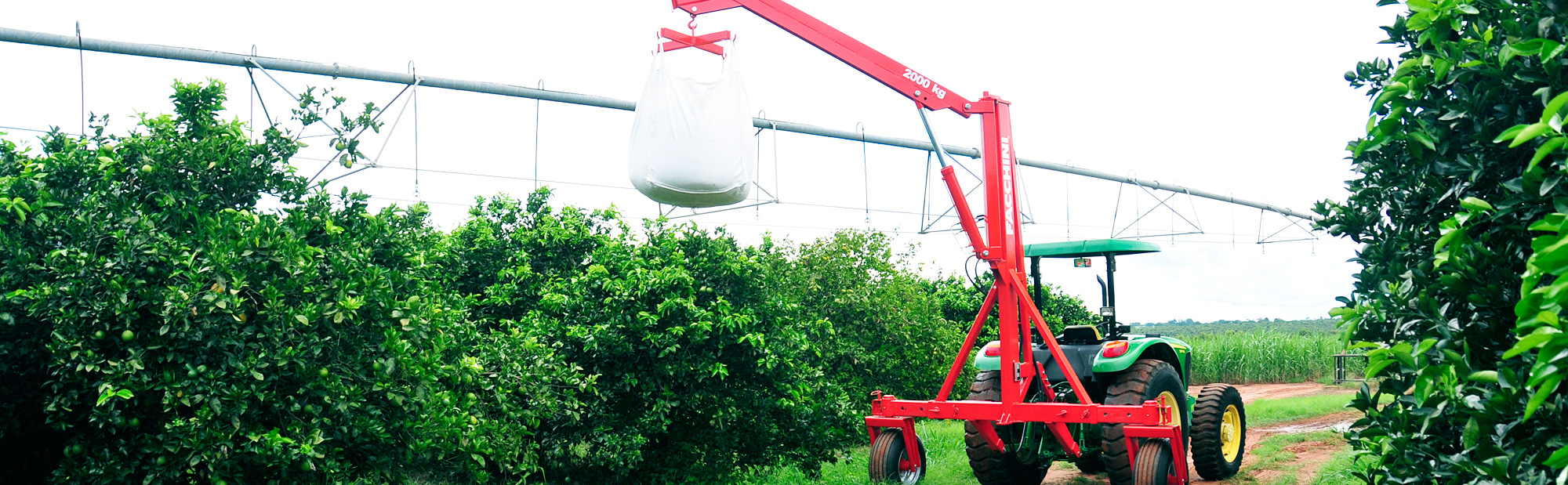 Gancho giratório com trava de segurança; suporte em X para Big Bag; barra reforçada do 3º ponto; pinos de 1" para os três pontos e lança.