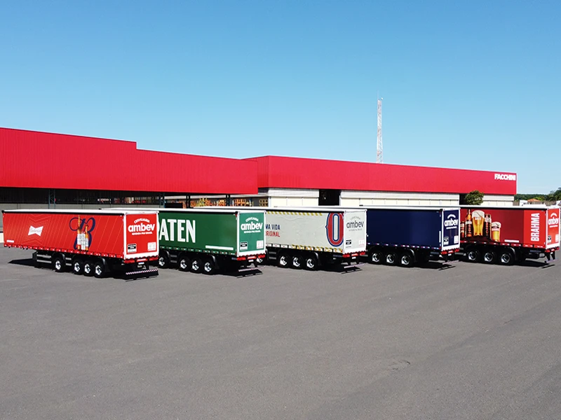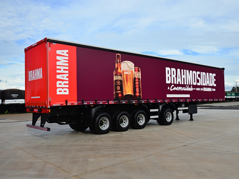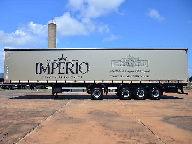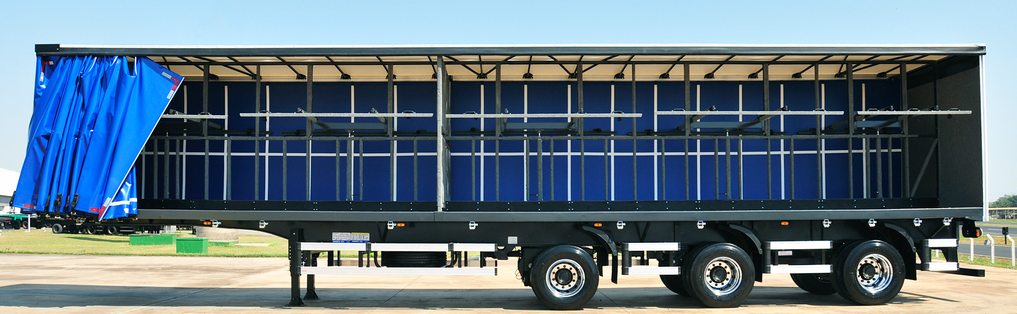 Laterais: Lona vinílica reforçada, sustentada por rodízios e tracionadas longitudinalmente pela dianteira e na vertical por catracas de polietileno, trazendo mais praticidade e maior eficiência no manuseio.