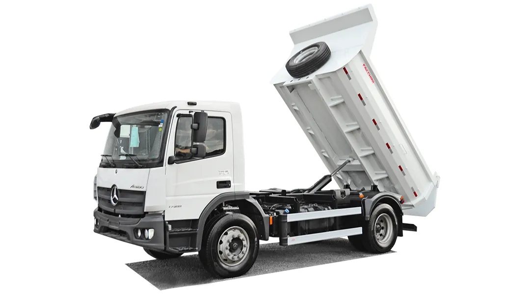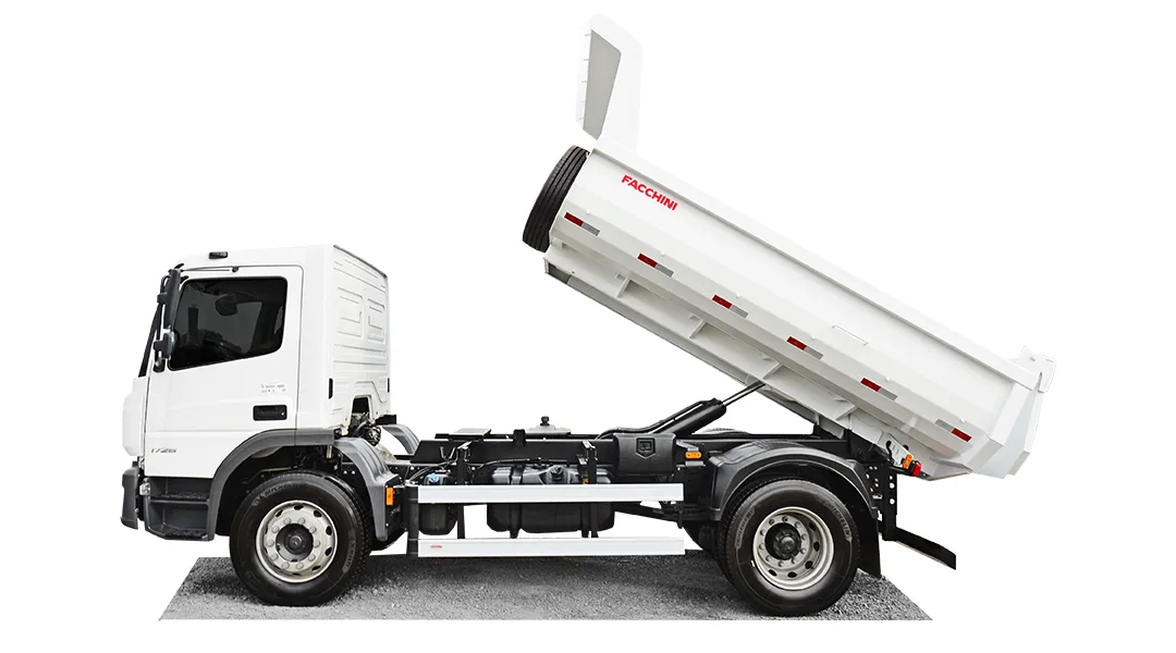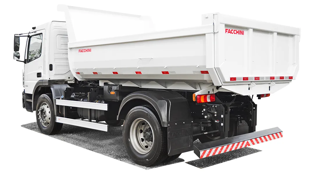 Pistão Frontal: Caixas de 13, 14, 16 m³: Cilindro hidráulico frontal de 3 ou 4 estágios, válvula de fim de curso, bomba hidráulica acoplada; tomada de força acionamento pneumático; reservatório de óleo com visor de nível; mangueiras hidráulicas; acionamento pneumático na cabine do veículo, pressão de trabalho de 175 bar.
