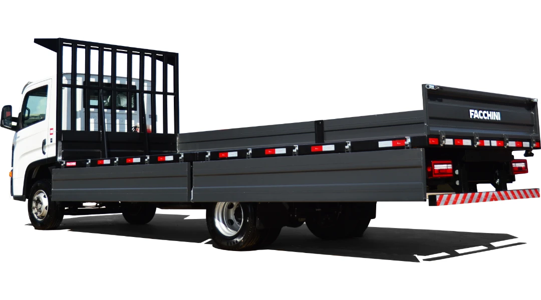 Caixa plástica de ferramentas; para-lamas plástico e para-barros de borracha. Itens normatizados do CONTRAN: alças de amarração interna | Resolução 552|15 e 631|16; para-choque traseiro | Resolução 952|22; faixas refletivas | Resolução 948|22; protetores laterais | Resolução 953|22.