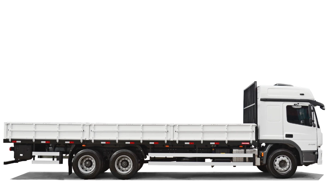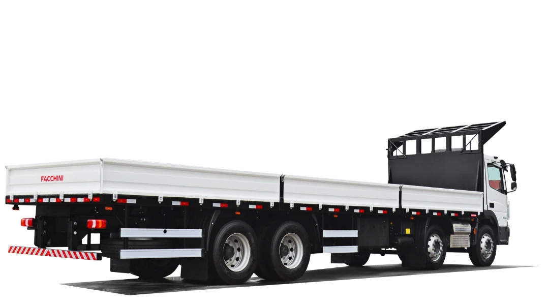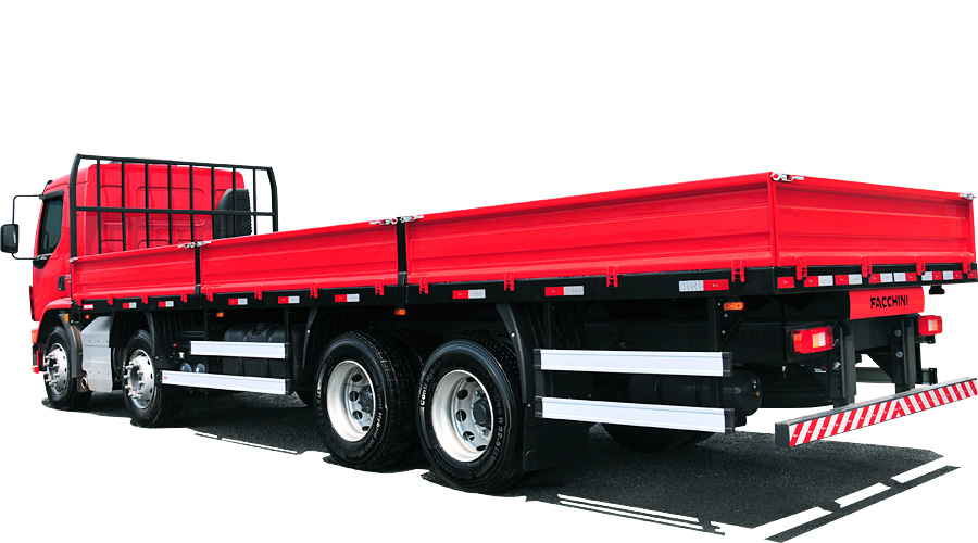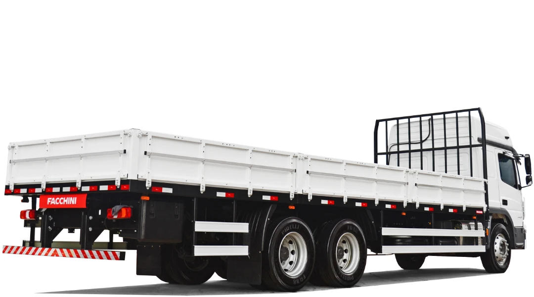 Carroceria com base monobloco, longarinas em vigas perfil I e com travessas passantes | Largura externa de 2,60 mm.