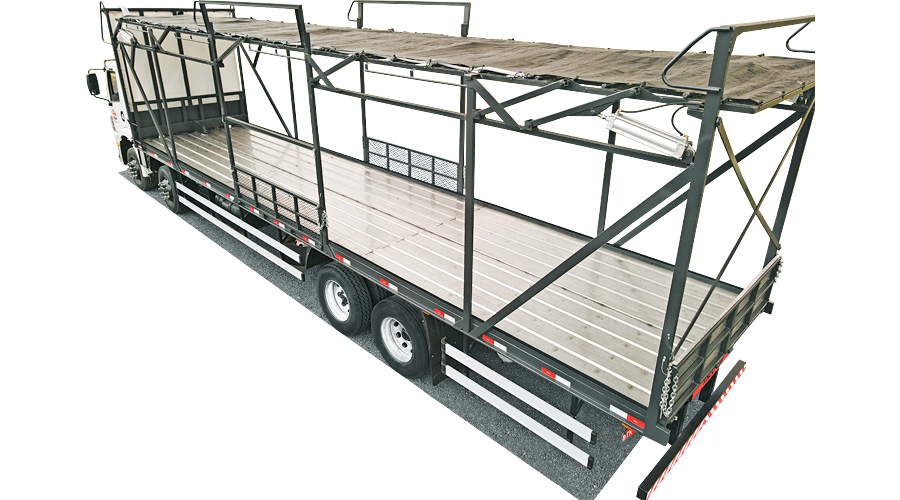 Caixa plástica de ferramenta; paralamas plástico e parabarros de borracha; escada frontal lateral móvel, no lado do motorista; faróis auxiliares laterais e traseiro | led; cilindros pneumáticos série ISO; reservatório de ar exclusivo para o sistema pneumático da carroceria; teto móvel com tela metálica e tela tipo sombrite | 60% a 70%; tampa traseira basculante abertura de 90° e 180° com fechamento em chapa de alumínio antiderrapante; guias laterais para os cabos de aço do carro de descarga. Itens normatizados do CONTRAN: parachoque traseiro | Resolução 593|2016; faixas refletivas | Resolução 643|16; protetores laterais | Resolução 323|2009.