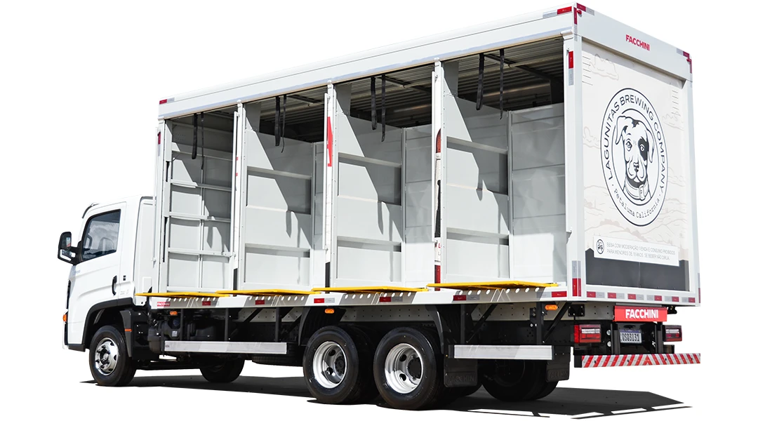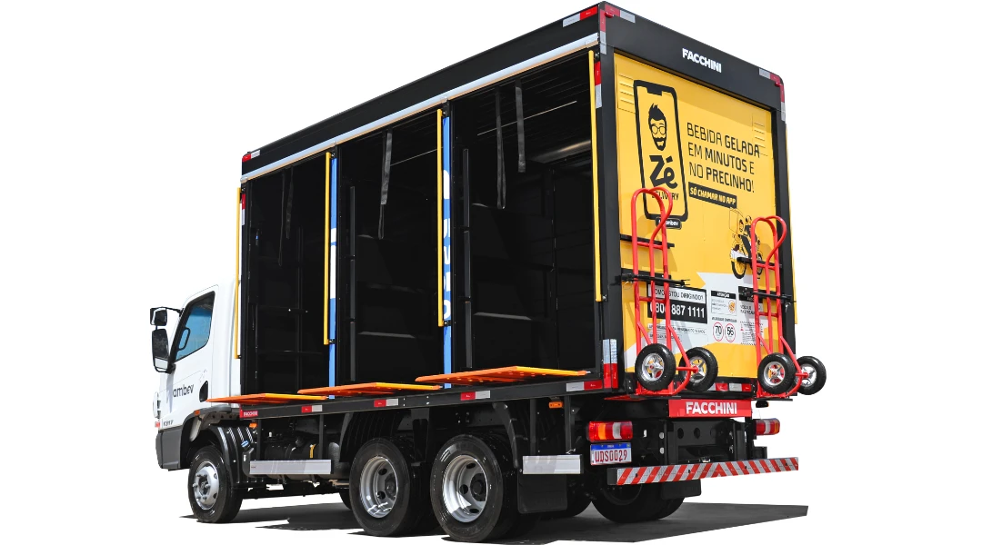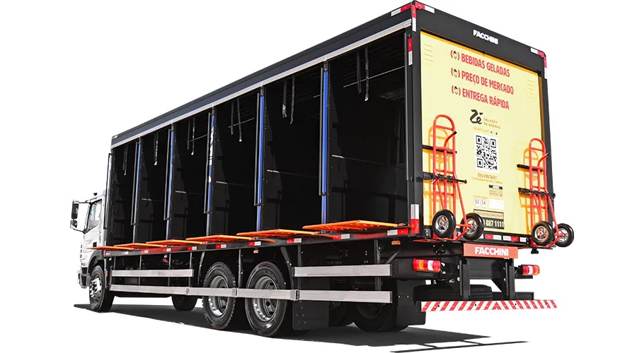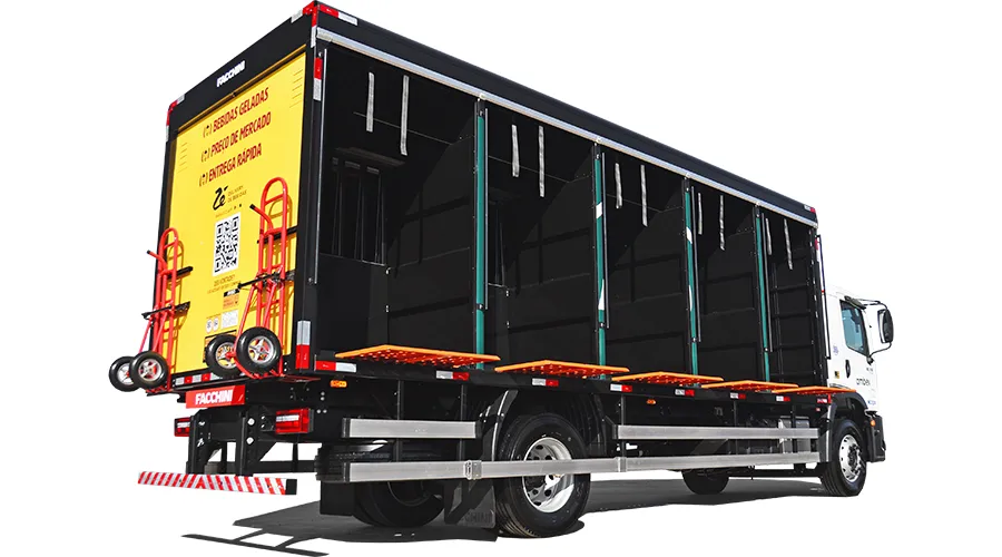 Suporte para carrinhos; carrinhos; plataforma retrátil em alumínio embutida em todas as baias; sirene indicadora de ré; sensor de ré; suporte para cone; cones; alças de apoio interno; alças de apoio externo; fim de curso anti-guilhotina nas portas; trava manual nas portas; cofre fixo no chassi; iluminação interna led.