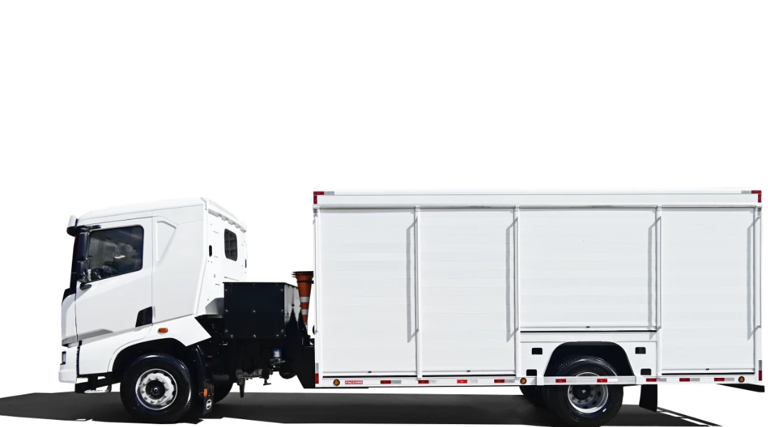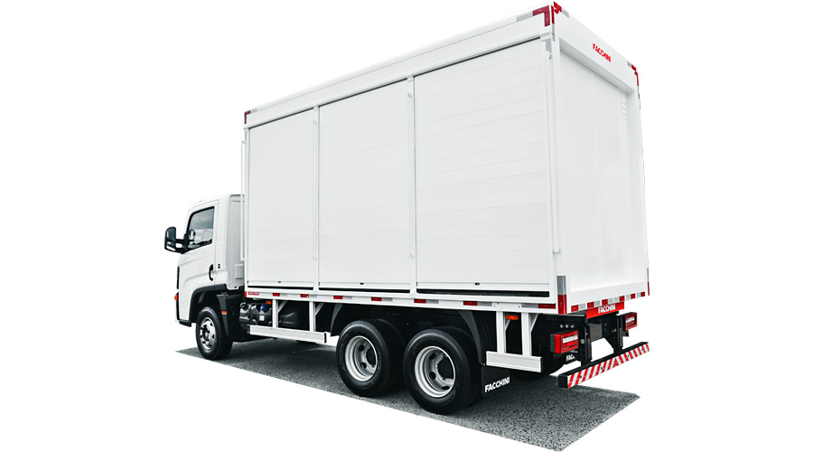 Pontos de fixação por consoles e grampos, com perfil de borracha ao longo de toda união entre a carroceria e o chassi do veículo.