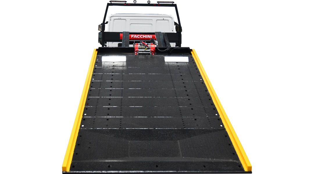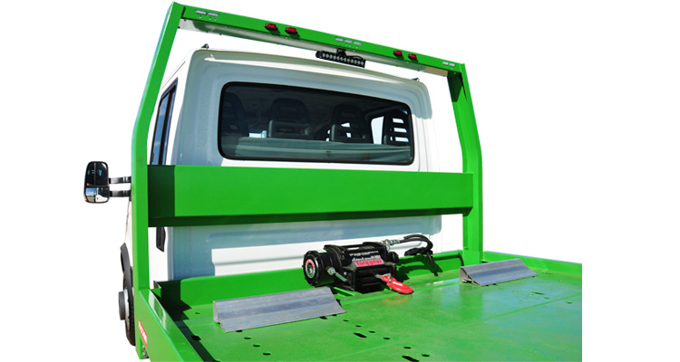 Sinalizador luminoso Led Flash Light; 01 barra de luz em Led 60 W para trabalhos noturnos; corote plástico de água; caixa plástica de ferramentas; paralamas plásticos com para-barros de borracha; sinaleiras laterais; 02 calços da alumínio para as rodas dianteiras; 04 cintas de nylon com catraca para prender as rodas do veículo transportado, ou 06 cintas quando for dotado de asa delta; 01 cinta de resgate com anel de 02 ganchos de aço; 01 patesca capacidade 2.000 Kg.
