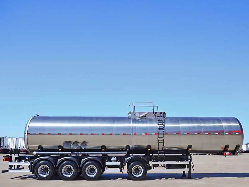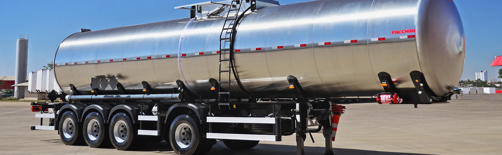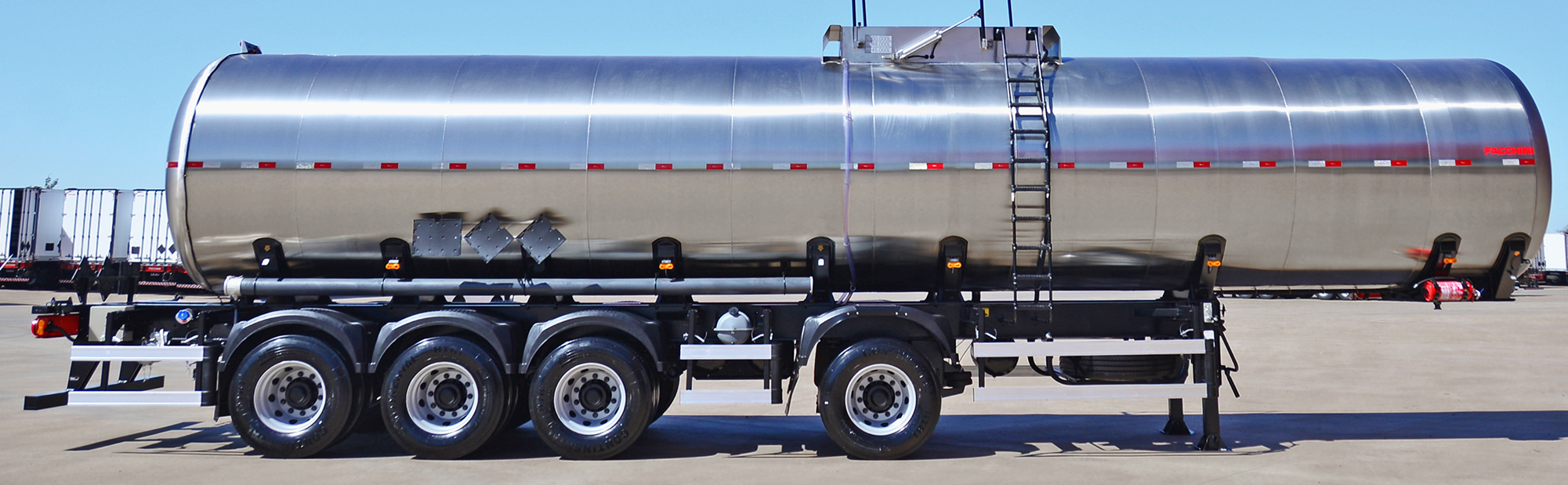 Tanque de concepção monobloco com seção cilíndrica, com calotas e quebra-ondas estampados em aço Inox 304 L;