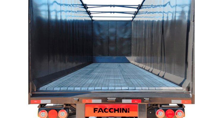 Assoalho: Piso móvel em alumínio Hyva, acionado por unidade hidráulica.