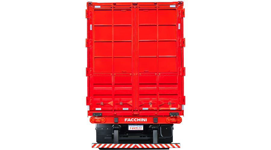 Suporte de estepe para dois pneus; uma roda sobressalente; caixa plástica de cozinha; caixa plástica de ferramentas; corote plástico de água; para-lamas plástico e para-barros de borracha; escada no painel frontal da caixa de carga; suspensor pneumático; alojamento frontal da lona. Itens normatizados do CONTRAN: para-choque traseiro | Resolução 952|22; faixas refletivas | Resolução 948|22; protetores laterais | Resolução 953|22.