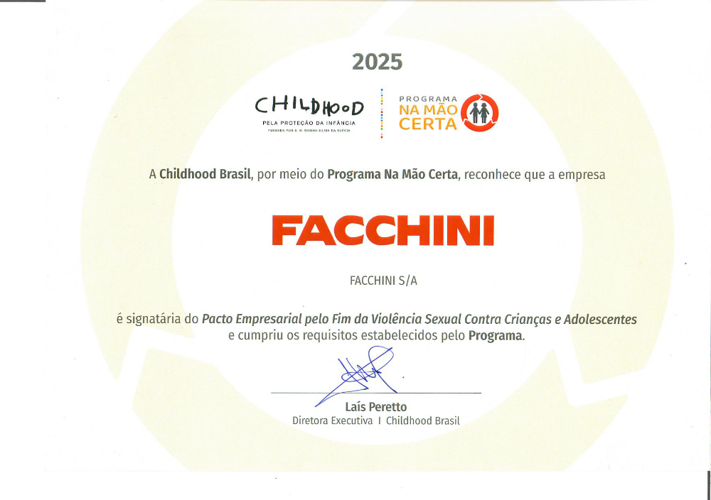 A Facchini tem se destacado por sua inovação e compromisso com a sustentabilidade e com isso desenvolveu o selo